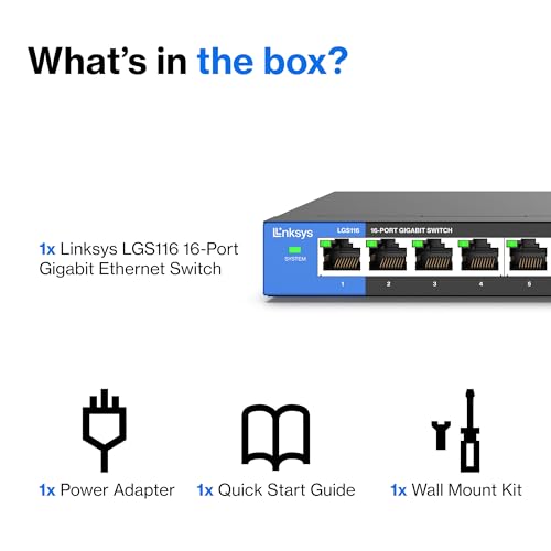 Linksys LGS116: 16-Port Business Desktop Gigabit Ethernet Unmanaged Switch, Computer Network, Wired...
