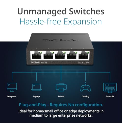 - The lowest price of D-Link Ethernet Switch, 5 Port Gigabit Unmanaged Metal Desktop Plug and Play Compact (DGS-105) was obtained on April 7, 2026 12:14 am.